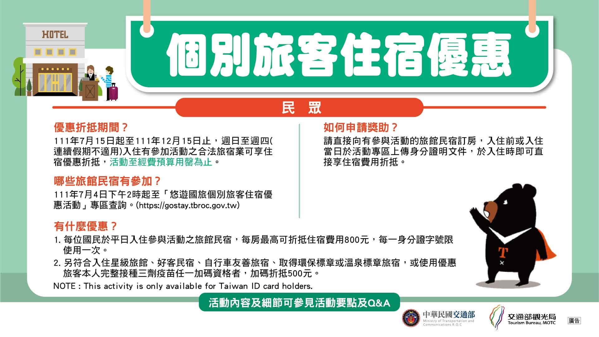 交通部觀光局 國旅振興 悠遊國旅補助方案,本週五(7月15日)起正式上路,每晚住宿最高可補助1300