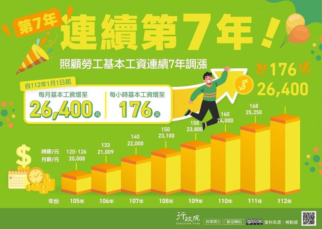 感謝各行各業裡每位勞工朋友的付出與貢獻 ,政府照顧勞工朋友們,基本工資已連續第7年調漲