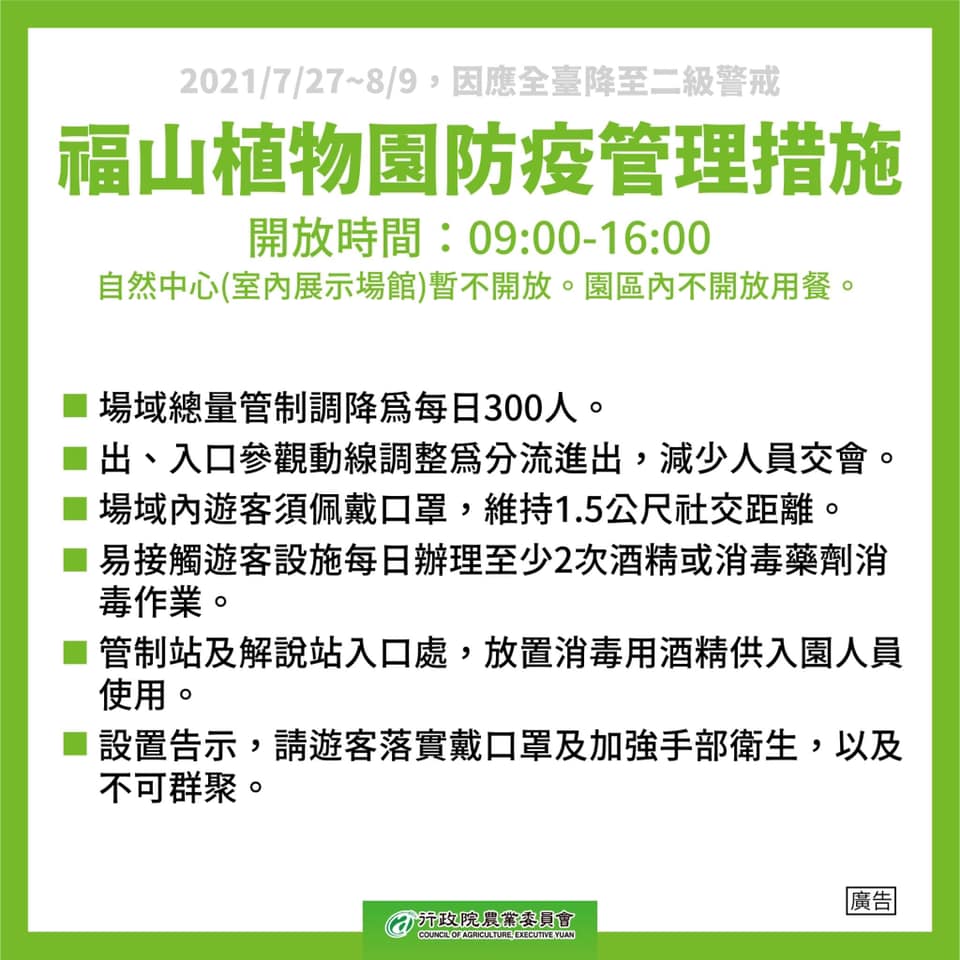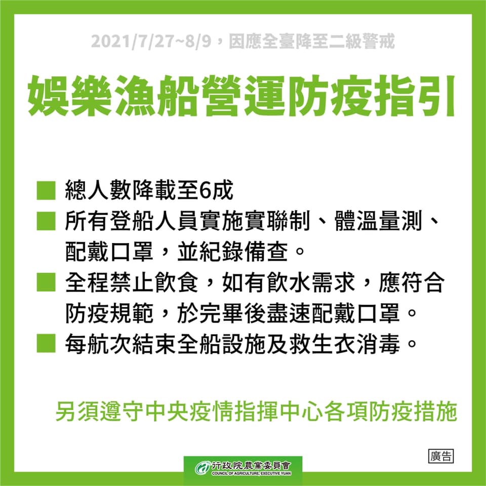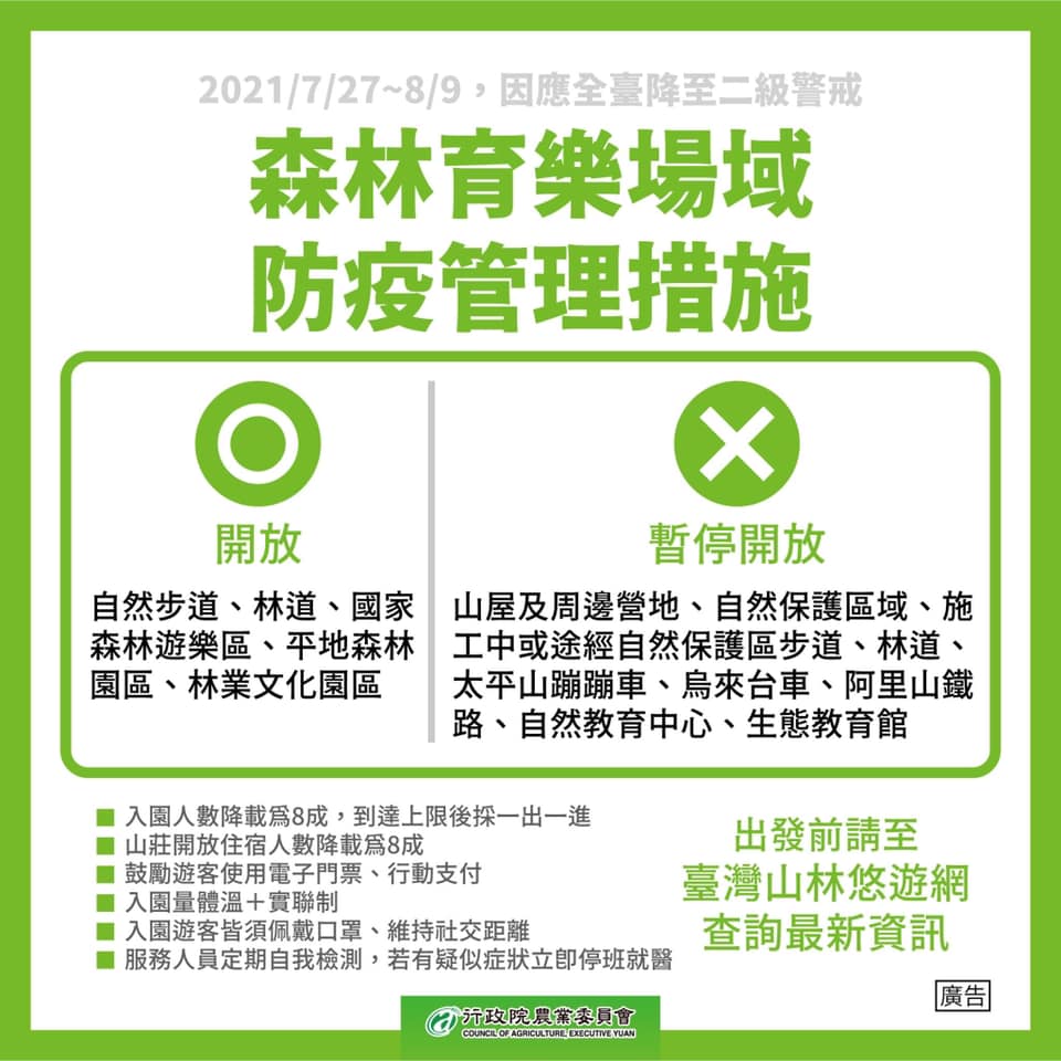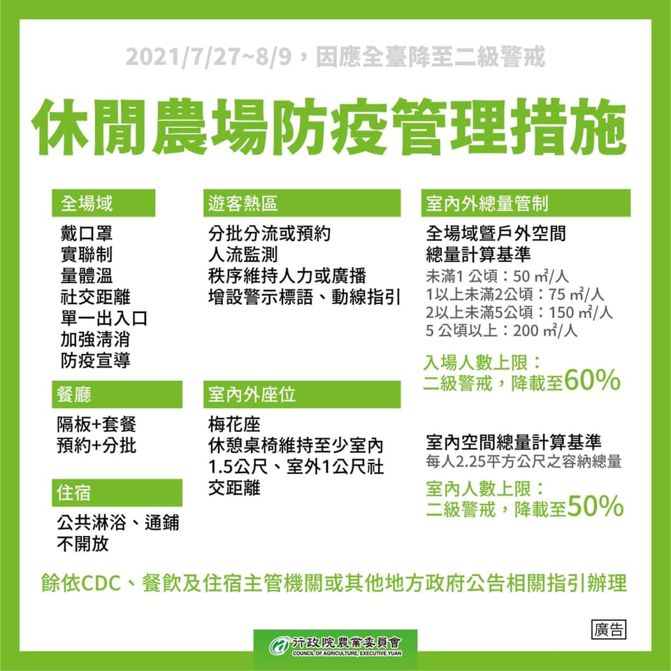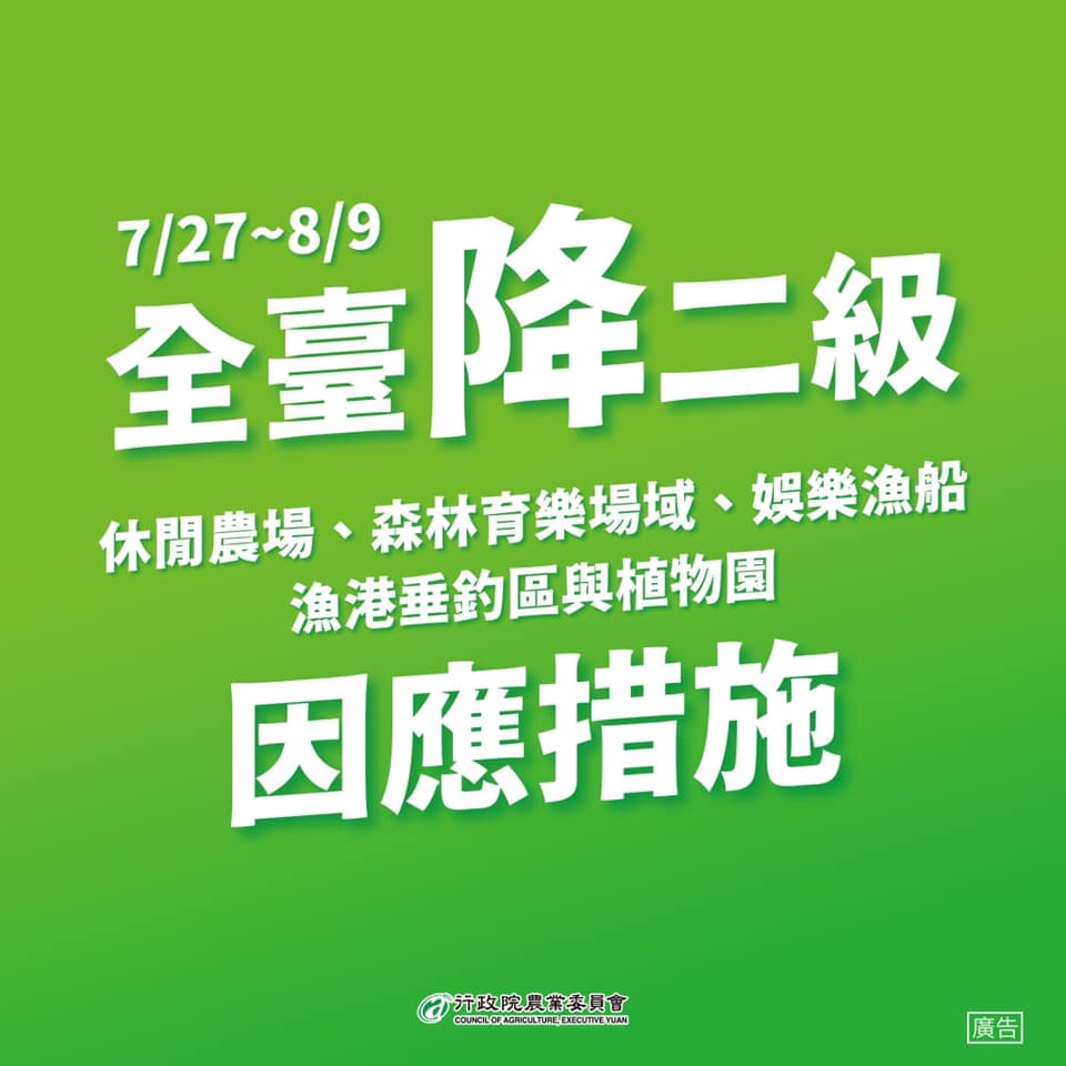 農委會 7/27起放寬 休閒農場、森林育樂場域、娛樂漁船漁港垂釣區與植物園因應措施