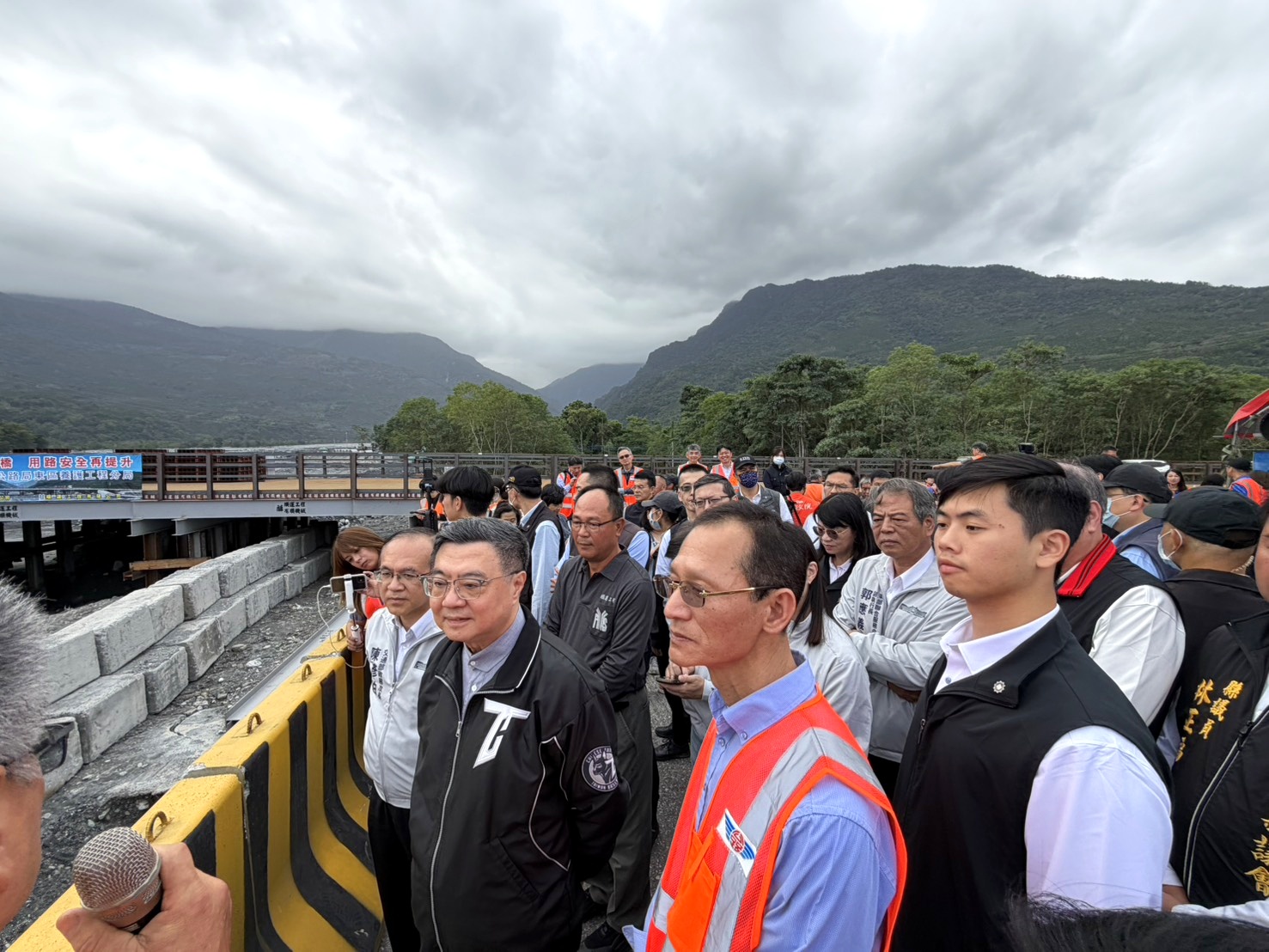 郭應義副執行長陪同卓榮泰行政院長視察台9線馬太鞍溪橋重建情形
