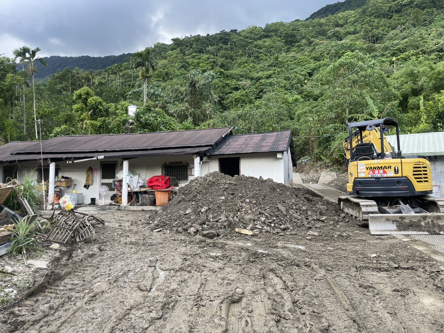 東服中心副執行長郭應義陪同陳院長視察壽豐鄉壽山村民宅受災情形