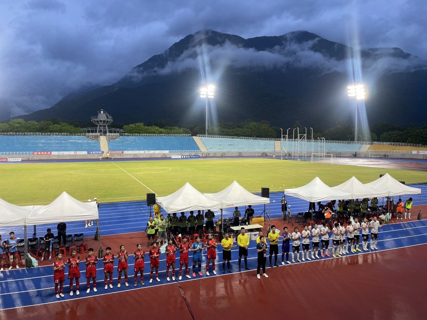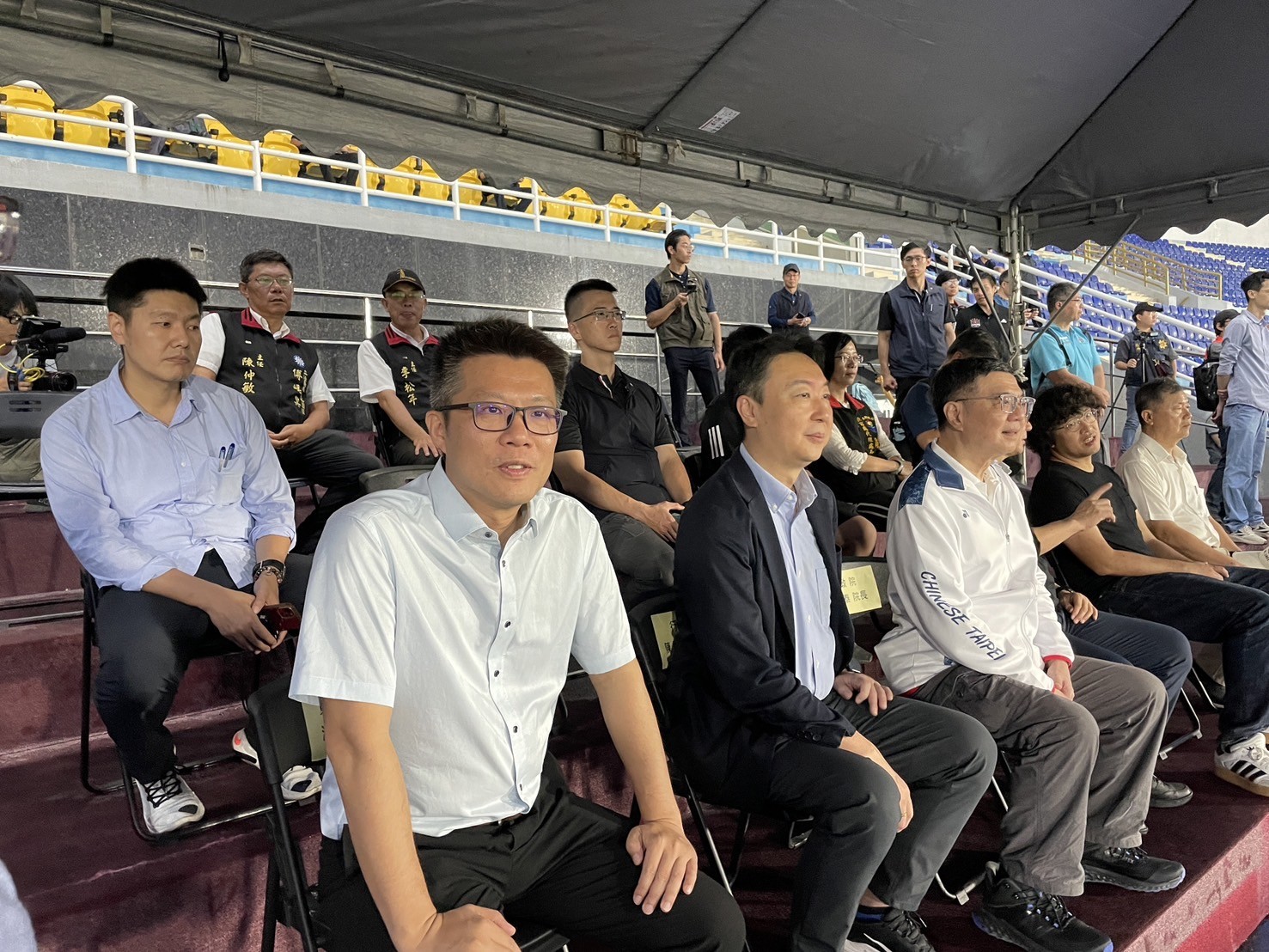 東服中心洪宗楷執行長與郭應義副執行長陪同卓榮泰院長觀賞「台灣木蘭足球聯賽-花蓮女足 VS 台中藍鯨」