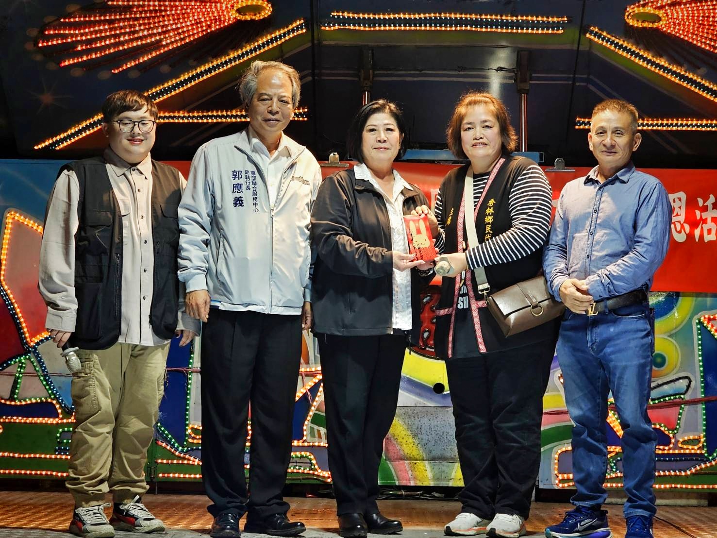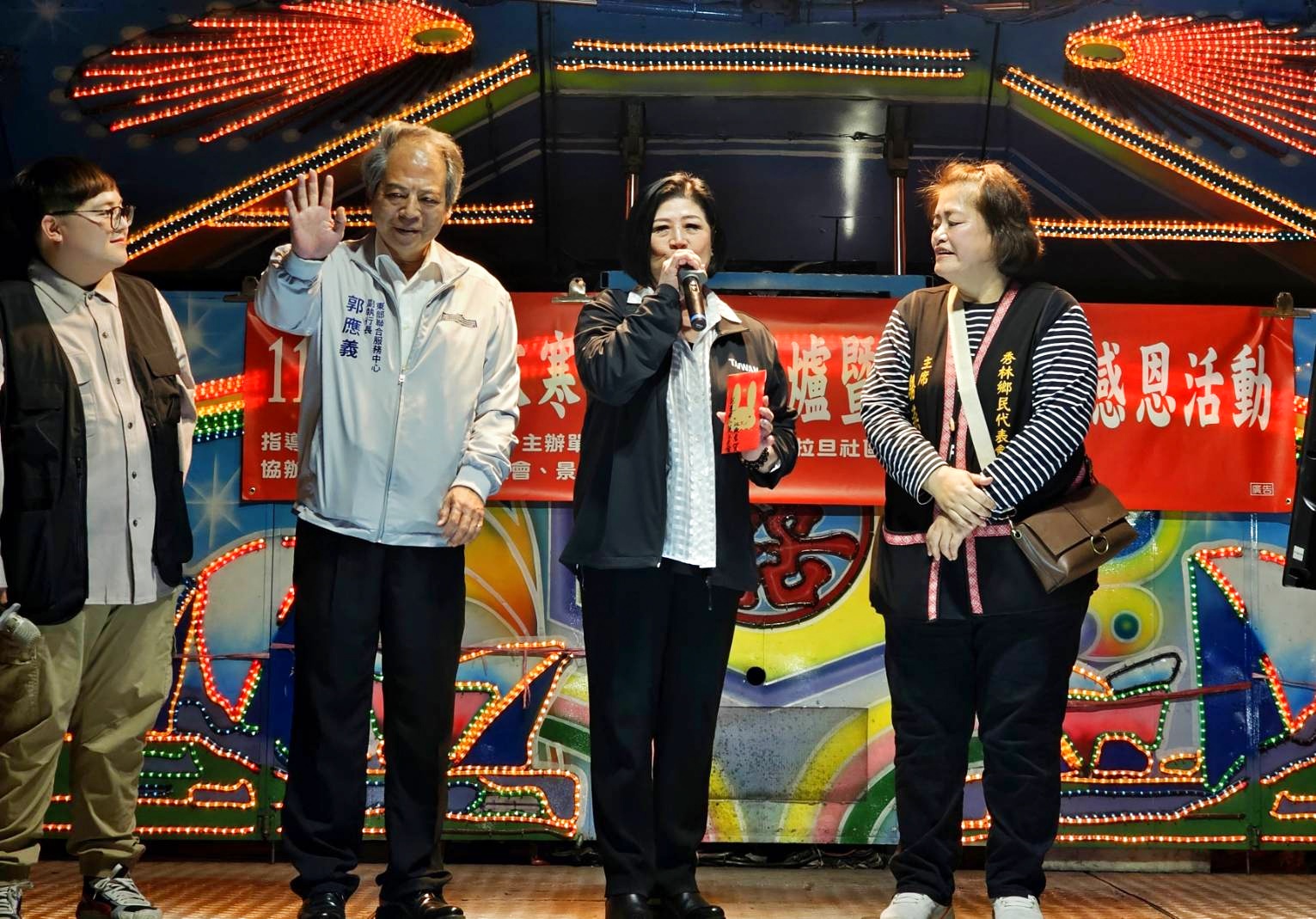 三棧寒冬送暖活動,郭應義副執行長陪同江顧問贈送加菜金